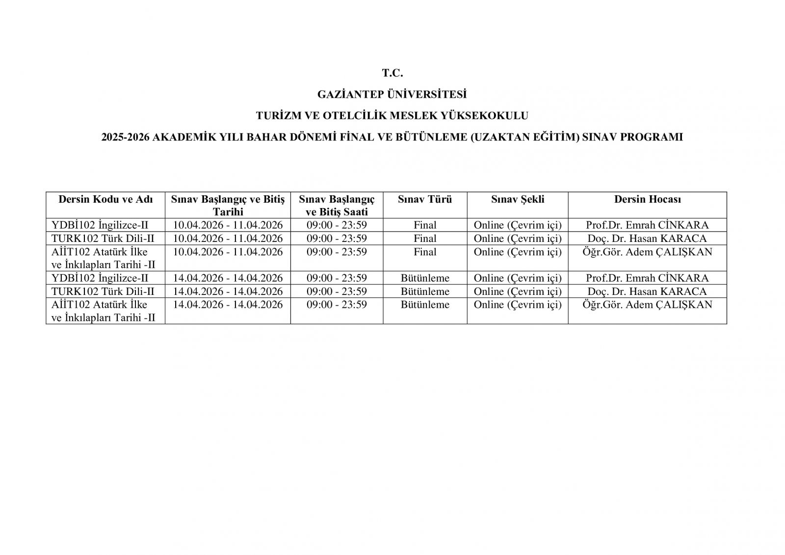 • UZAKTAN EĞİTİM FİNAL VE BÜTÜNLEME SINAV PROGRAMI (2026/BAHAR)